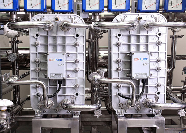 工业美女裸体视频APP用活性炭解决了水中大颗粒杂质过滤问题,用反渗透微孔半透膜去除了部分颗粒较小无机离子、细菌、有机物以及胶体杂质,紫外线装置杀灭了大部分的微生物,又通过超滤对水质进行了深度的过滤处理。现在,美女APP免费视频来了解下反渗透美女裸体视频APP中一个特殊装置,EDI模块。美女APP免费视频通常所说的EDI是Electrodeionization的简写,作为一种特殊的纯水制造技术,EDI将离子交换技术、离子交换膜技术和离子电迁移技术相结合,巧妙地融合电渗析和离子交换技术,利用两端电极高压使水中带电离子移动,并配合离子交换树脂及选择性树脂膜以加速离子移动去除,从而达到水纯化的目的。